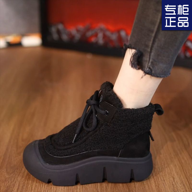 保温厚手の綿の靴の女性の2024冬の新型の百合の女性のファッションの高い綿の靴の女性