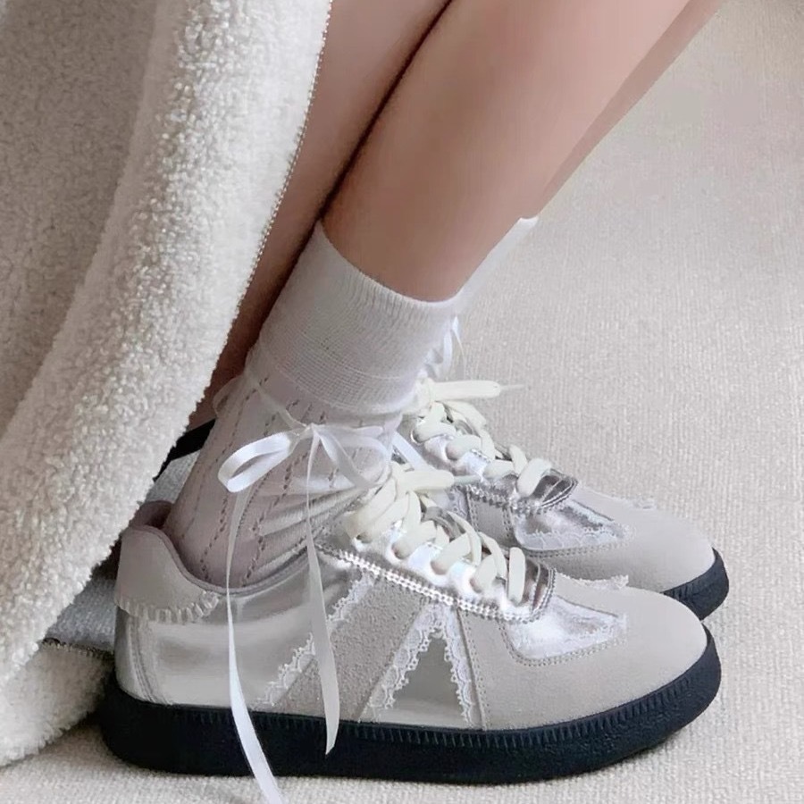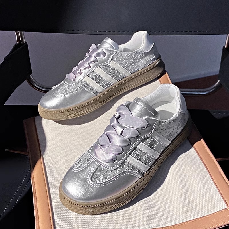 真珠レースの通気ネット靴の女性の夏の2024の新型の平の銀色の徳訓の靴の百合のレジャーの運動靴のins