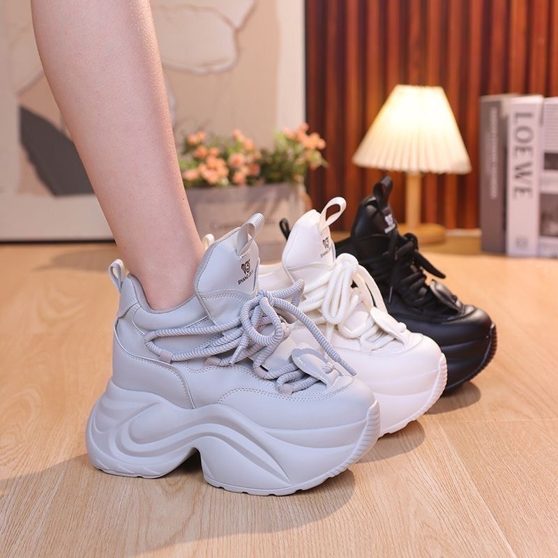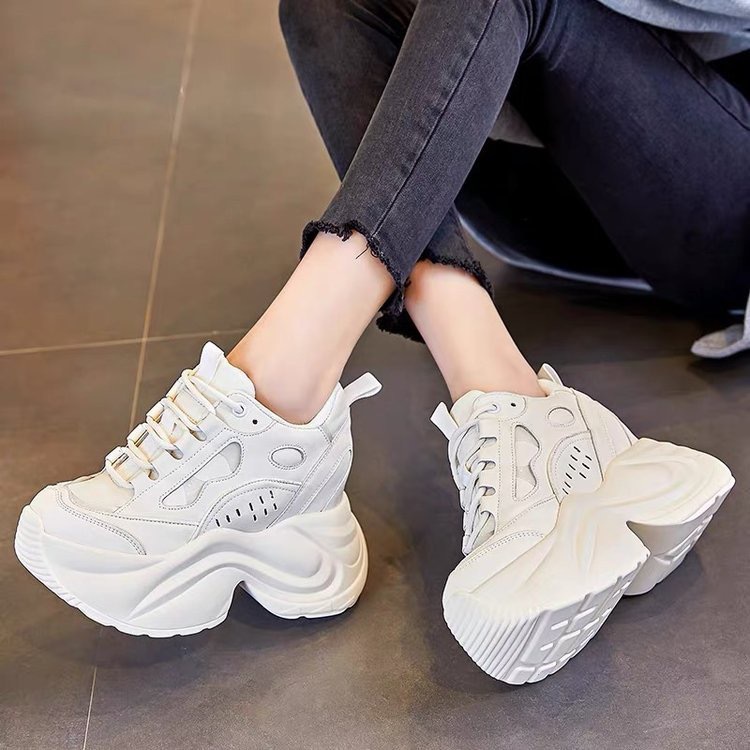 高くなった女性靴2024の新型の小さい背が高くて、お父さんの靴の運動のレジャーは厚い底の高い靴を配合します。