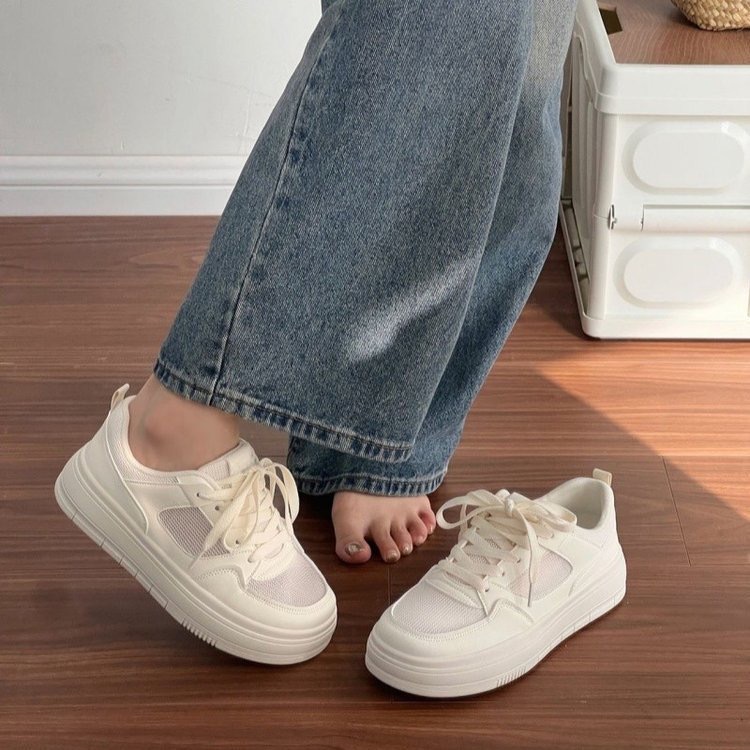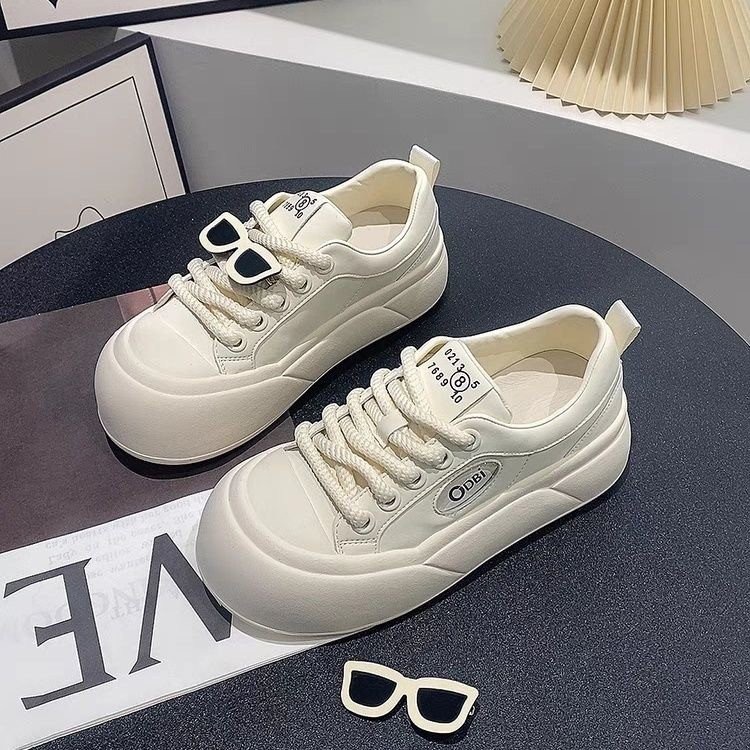 2024春の白い靴の女性の厚い底の低いレジャーの運動靴のパンの靴のひもの板の靴のファッションのクールな靴