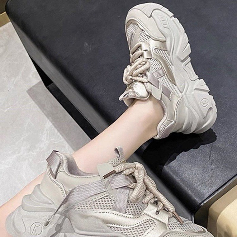 お父さんの靴の女性の2024の新型の夏のネットの靴の通気のネットの顔のinsの百合の潮の韓国版の学生の薄い金の運動靴