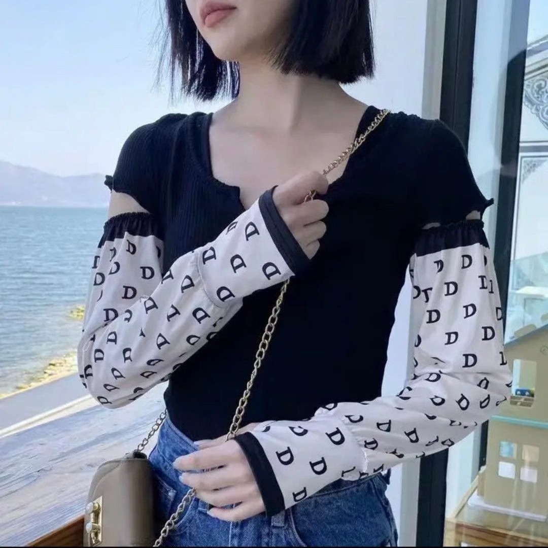 日焼け止め袖カバー女性氷糸通気性プリントアルファベット日焼け止め袖カバー屋外運転袖日焼け止め袖