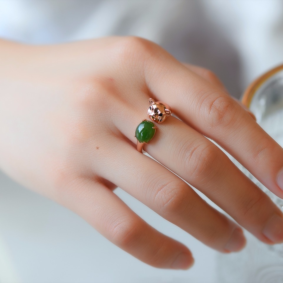 S925銀は和田玉碧玉の指輪をはめ込んでいます。