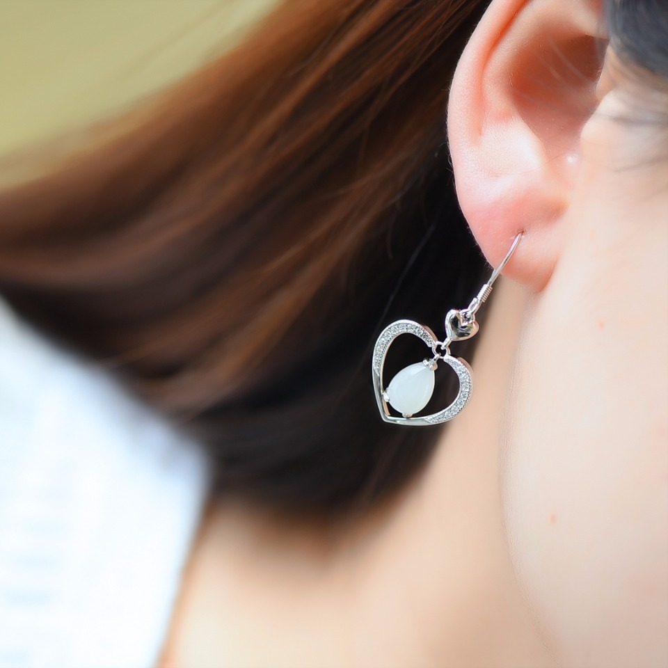 S925銀は和田玉の愛のイヤリングをはめ込んでいます。