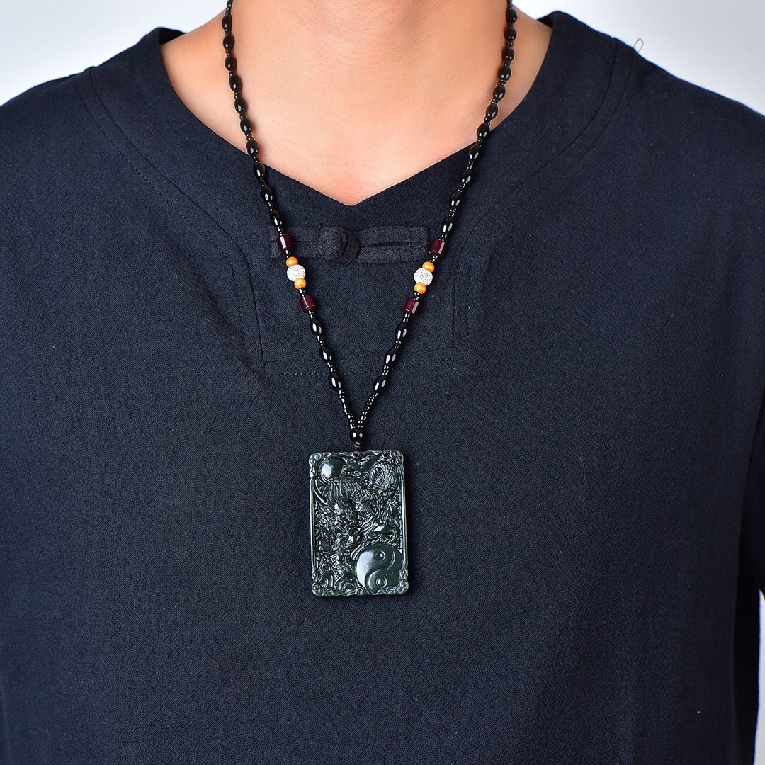 精巧な和田玉青玉吉祥龍牌
