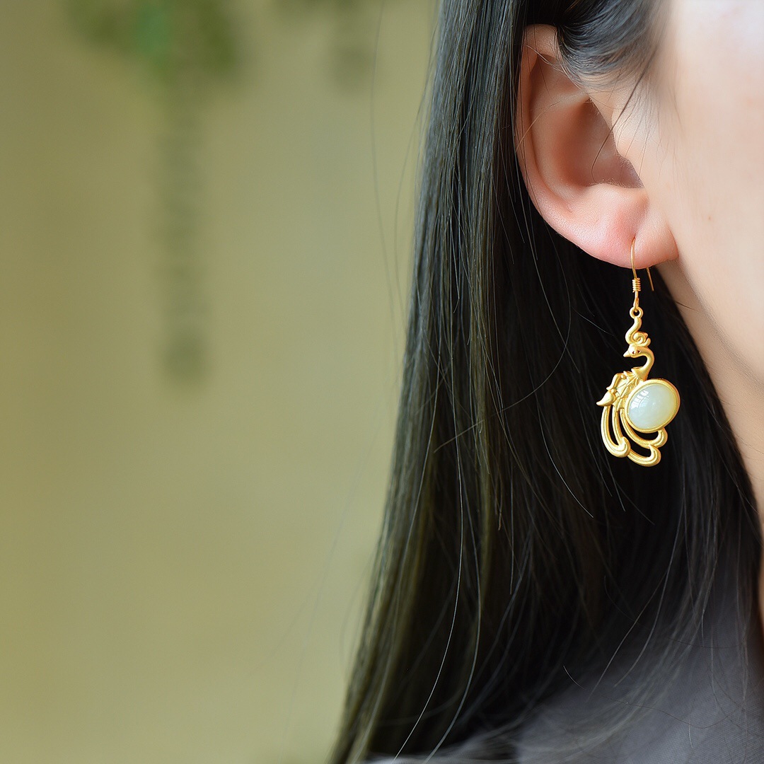 S古法銀は和田玉の美しいイヤリングをはめ込んでいます。