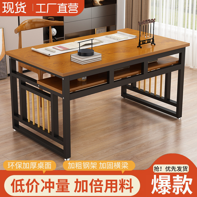 新しい書道テーブル、新しい中国風のスチールと木製のデスク、筆書道テーブル、シンプルな学習テーブル、家庭学習チェーン