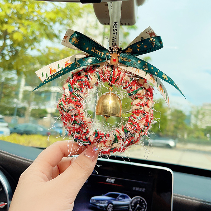 純粋な手編みの自動車のバックミラーの車内のペンダントの銅の鈴はクリスマスの美ラードの色の扉を飾って祝日の女を掛けます。