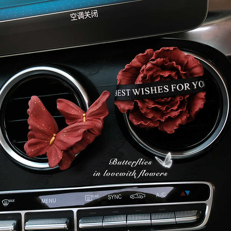 クロスボーダー枯れ葉バラレトロ紅牡丹車載アロマクラッシュルーム高級自動車用品車内香水蝶