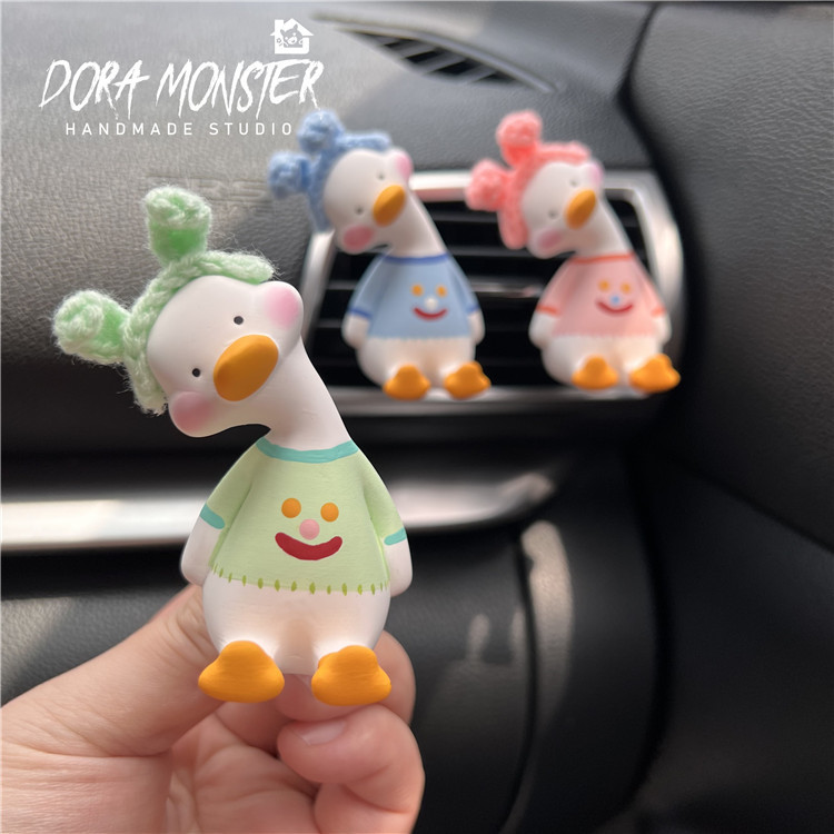車のエアコンの吹き出し口の装飾の女性のアロマの置物の車のアロマの中で台のアクセサリのかわいい漫画の首を傾けるアヒル