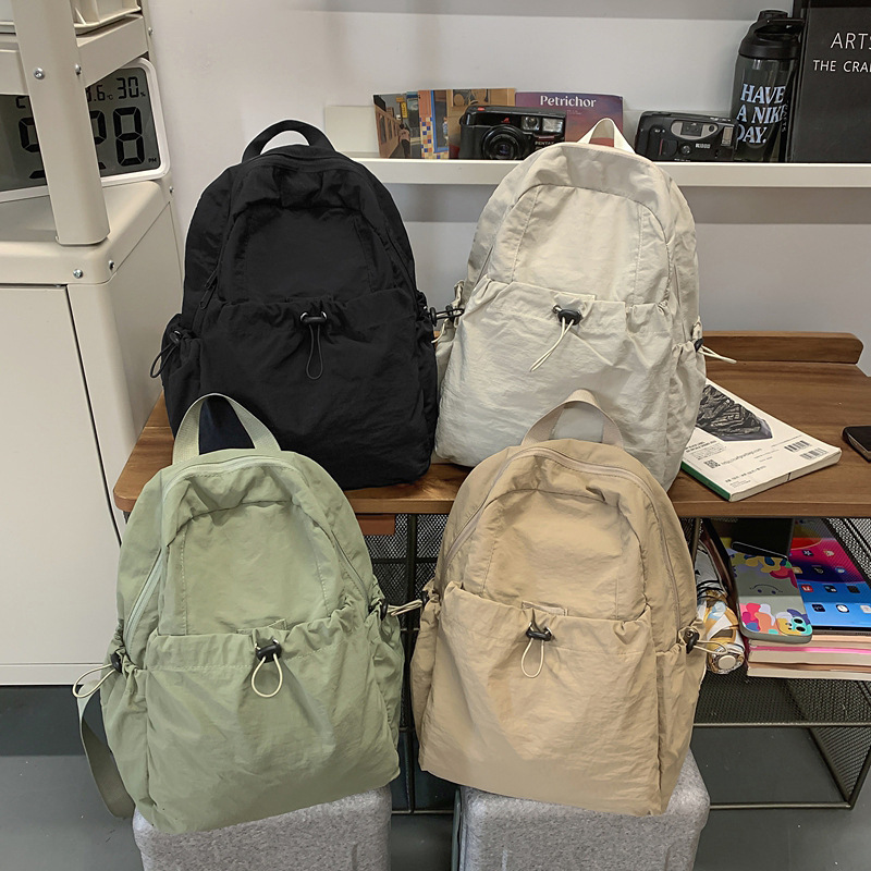 日本製無地プリーツナイロンバックパックメンズ大容量スクールバッグ女子大生軽量防水旅行バックパック