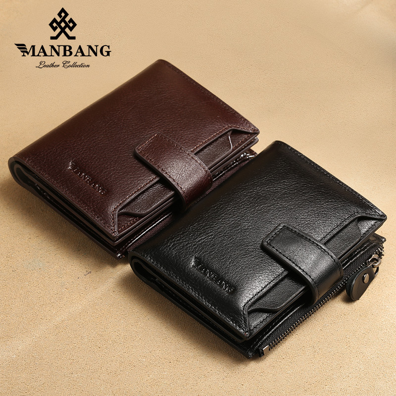 越境配送 マンバン メンズ財布 植物タンニン鞣し牛革 トップレイヤー牛革 小銭入れ ジッパー付き 多カードスロット ショートウォレット