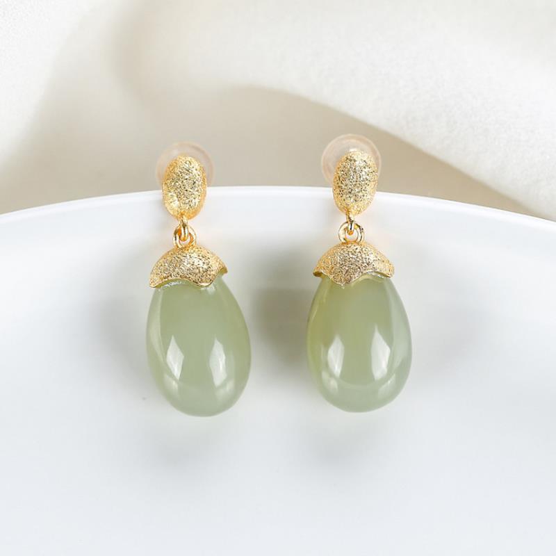 925銀金メッキ緑松石楕円宮廷風中国風気質復古小衆長型女性ピアス