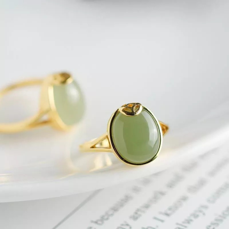 S925純銀金メッキは碧玉楕円卵面の金枝玉葉の開口部をはめ込んで気質の指輪を調節することができます。