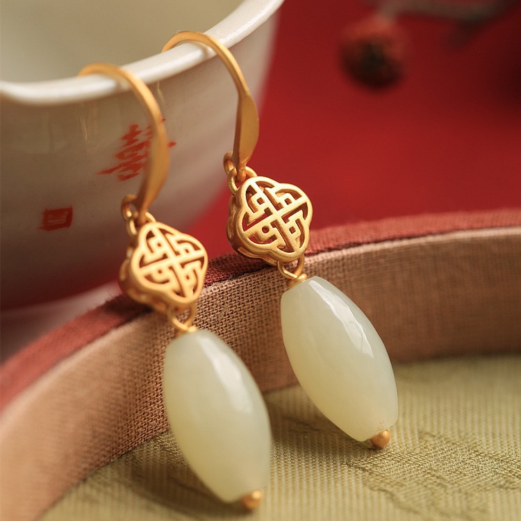ニッチなデザイン、高級感のある純銀、古代のホータン製法のレトロなイヤリング、女性用イヤリング、イヤリング