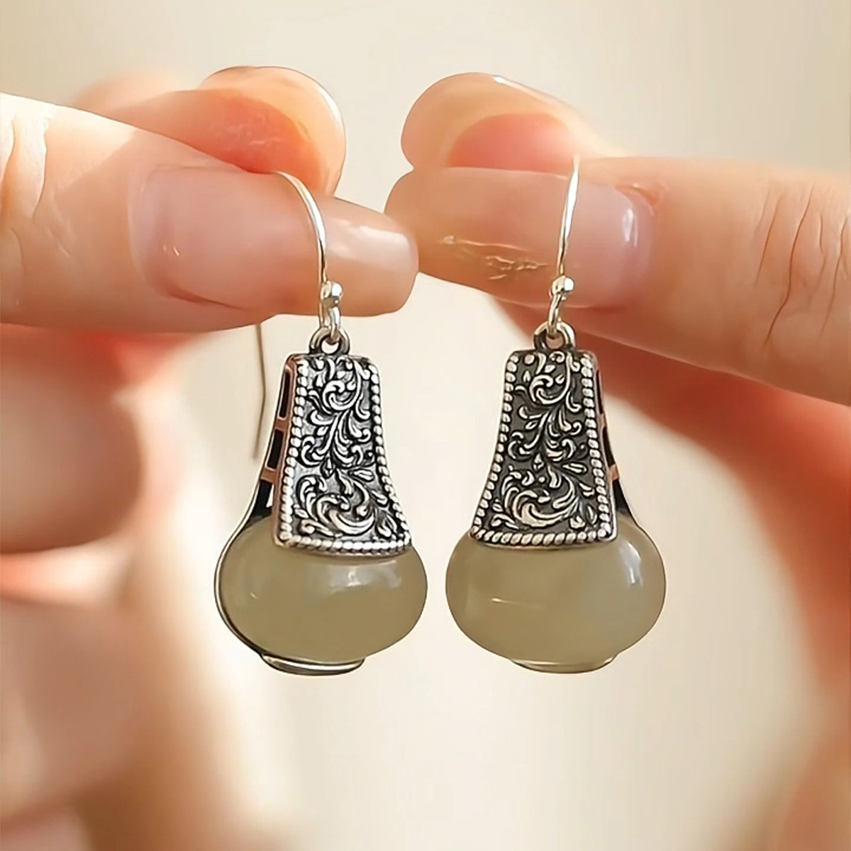 925 シルバーレトロ新中国風唐草模様ホータン翡翠電球イヤリング耳フックエスニックスタイルジュエリーニッチ感