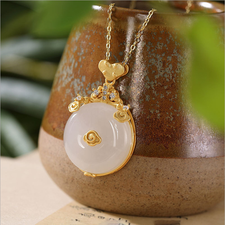 和田玉平安ボタンのネックレスの女性の軽豪華な小衆が鎖骨チェーン2023の新型の爆発的な爆発物をペンダントして彼女にプレゼントします。
