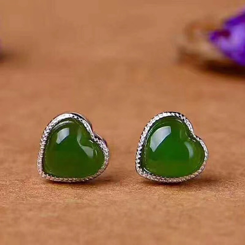 中国式の天然玉の故宮の上で新しいs925銀の耳は碧玉のほうれん草の緑の小さい花の復古のイヤリングの女性の装飾品に落ちます。