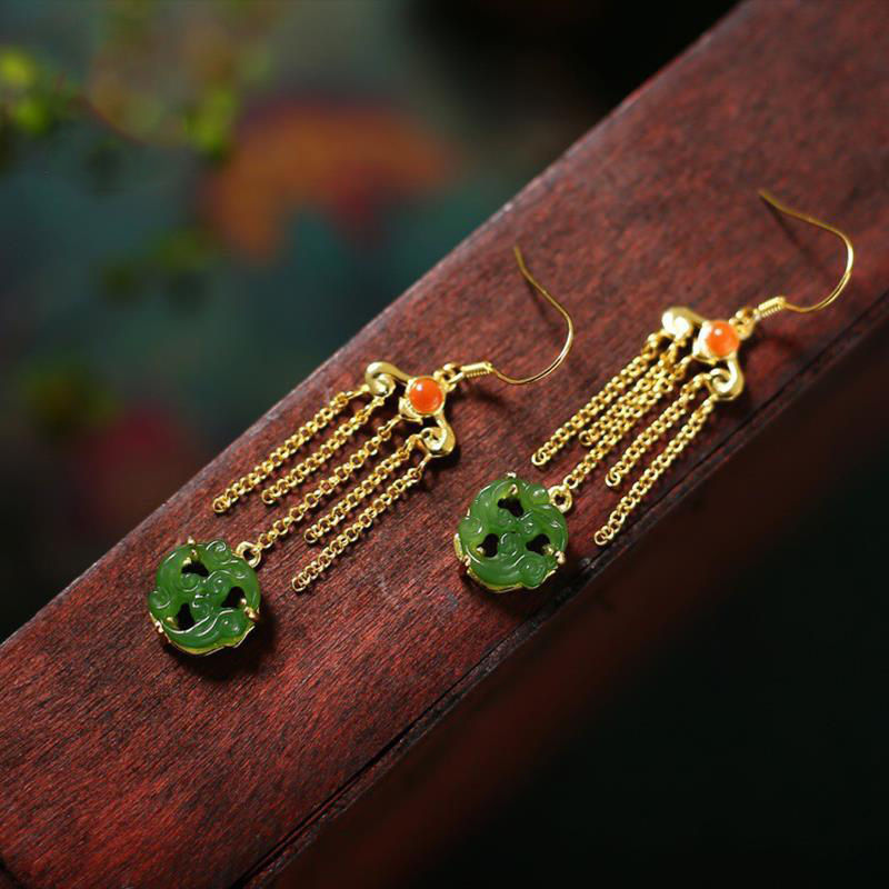 オリジナルデザインの中国式宮廷風玉碧玉イヤリング