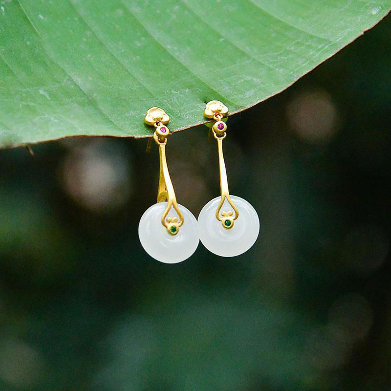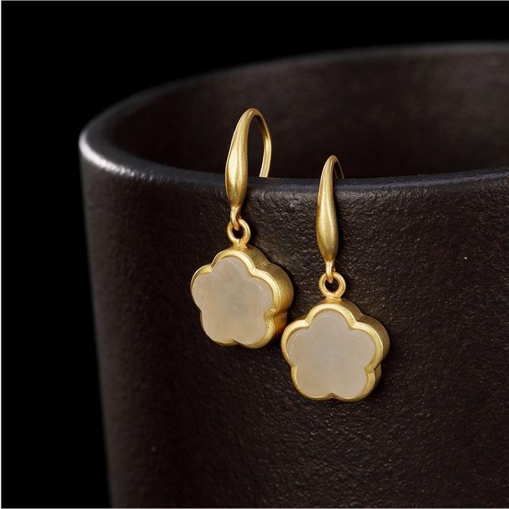 天然白玉は金メッキされた梅のイヤリングをはめ込んでいます。