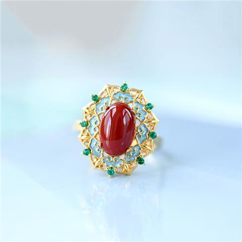 925純銀モザイク南ルビー景泰青卵面8号指輪宮廷風開口は指輪銀飾りを調節できる