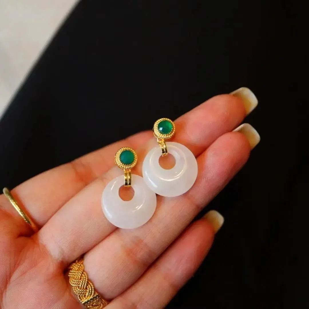 一目惚れ和田碧玉純銀平安ボタンの短いイヤリングの気質が復古的で贅沢なジェーンが彼女のイヤリングを送った