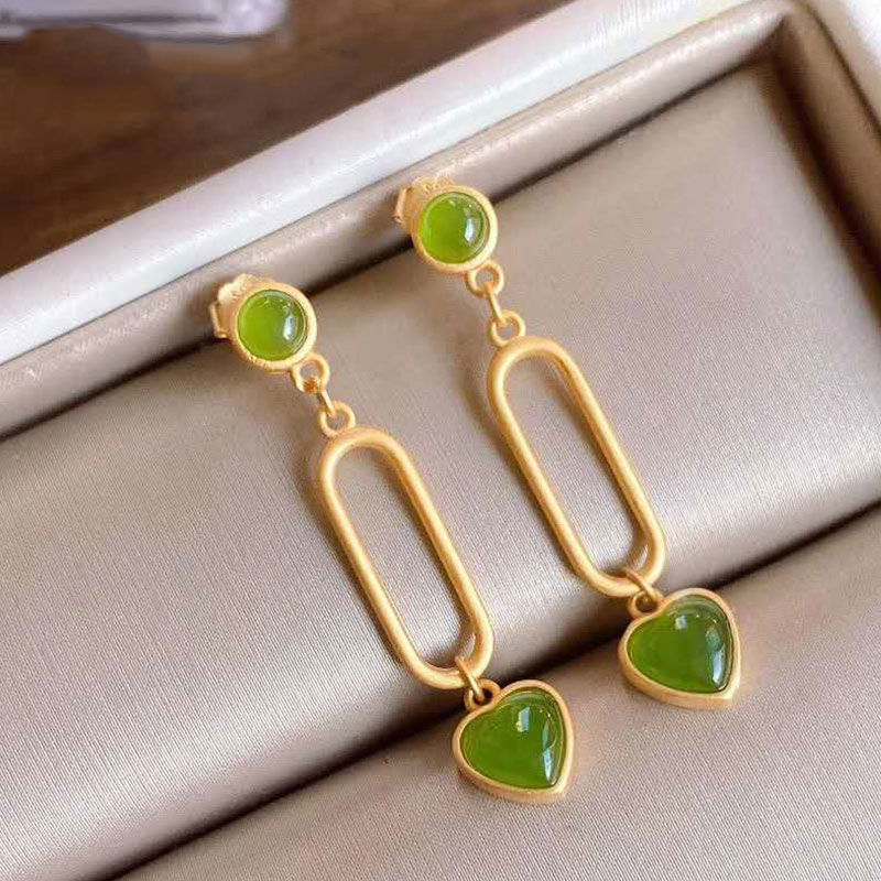 ハート型の長いタイプの桃の心の気質の金メッキの天然の緑の松石の碧玉の綿の空のファッションの優雅な女性のイヤリング/耳飾り