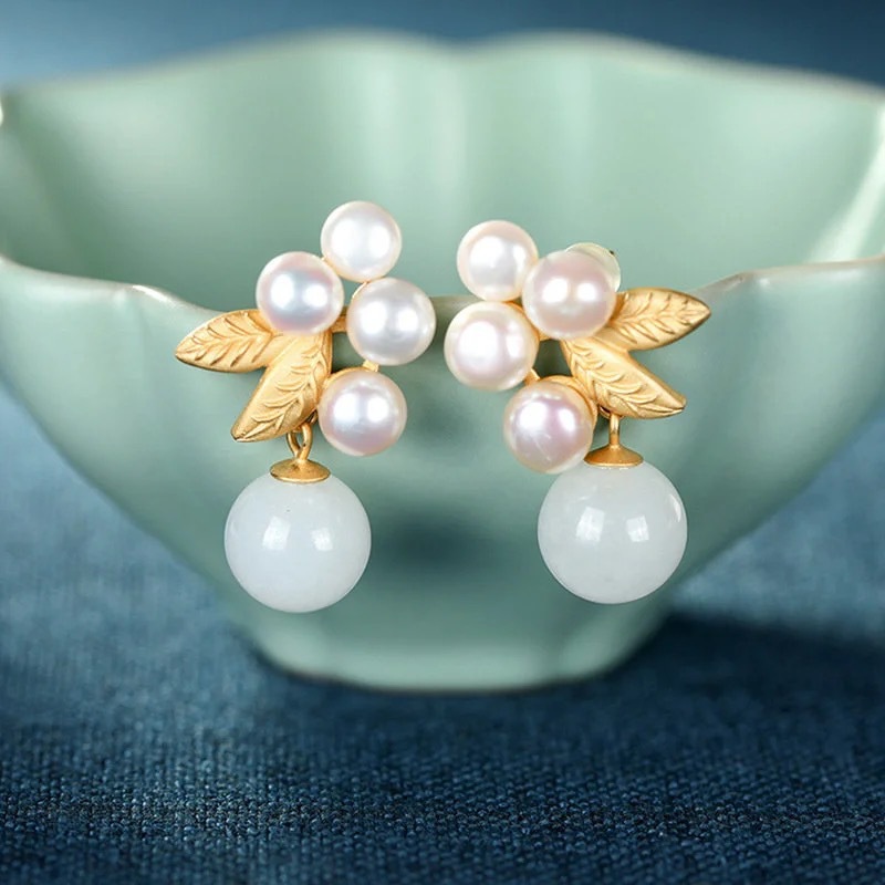 S925銀金メッキ玉蘭白玉髄古宮廷風中国風気質百合小衆長型女性ピアス