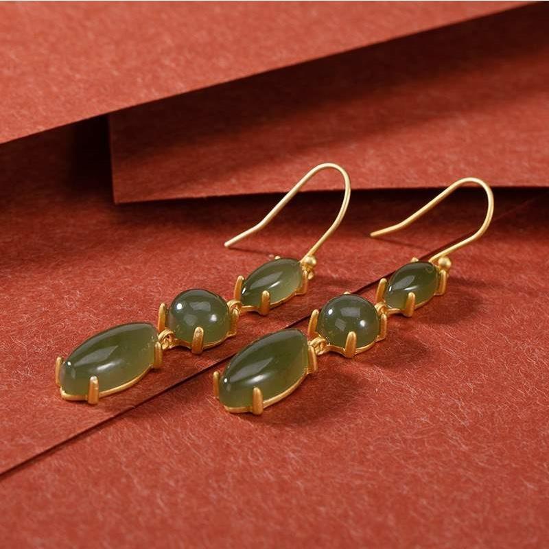 オリジナルs925純銀大衆デザイン個性気質女性和田玉青玉高級ロングイヤリングイヤリング