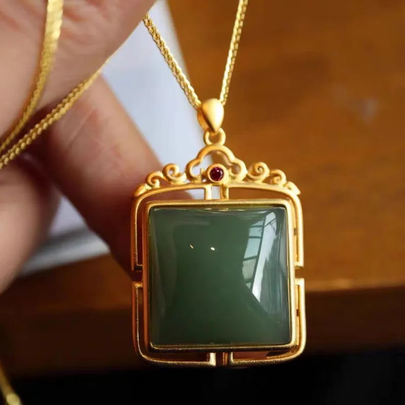 天然白玉碧玉ネックレス中国式民族風古風ペンダント鎖骨鎖沙金復古佩玉工芸金
