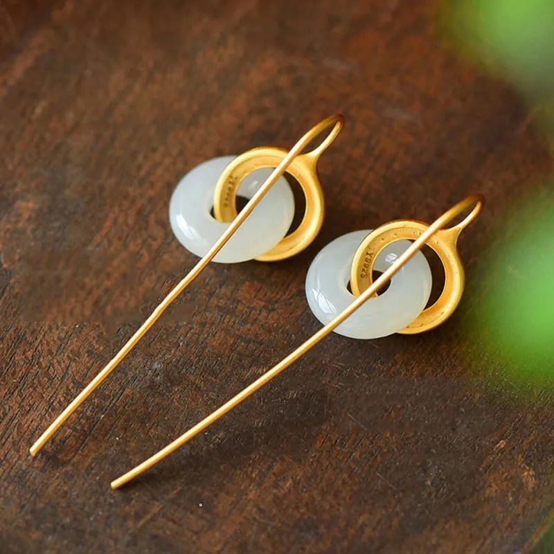 和田玉喜の字のイヤリングの銀の金メッキの白玉の祝い事の如意の耳飾りの宮廷風の美しいファッションの幾何学のイヤリング