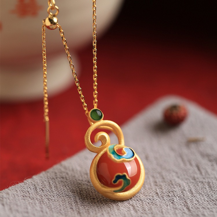 純銀と田玉のネックレスの女性エナメル祥雲瓢箪古風鎖骨チェーン玉ペンダント