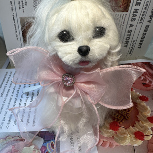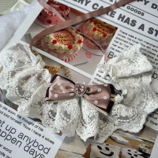 猫の多いピンクの子犬の首を囲むペットのアクセサリーの首輪の蝶結びの布の襟のレースの口を囲む犬の口のタオル