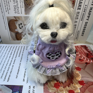犬の紫の黒系のレースのマフラーは口を囲みます。