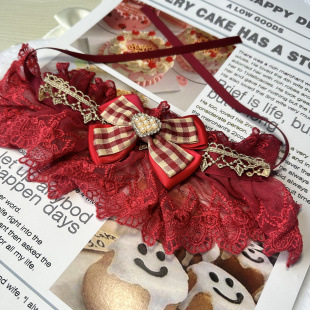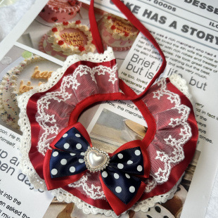猫ミミ新年の赤いマフラーのペットのアクセサリーの首輪の蝶結びの布の襟のレースの口の犬のよだれのタオル