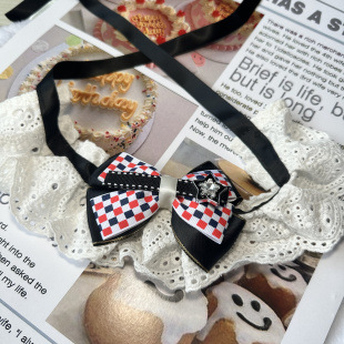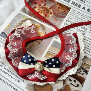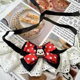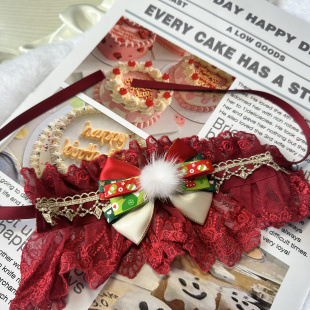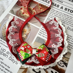 猫ミミ新年クリスマスの首を囲むペットの首輪の蝶結びの布のリボンのレースの口を囲む犬のよだれタオル