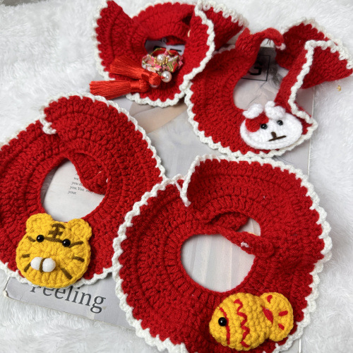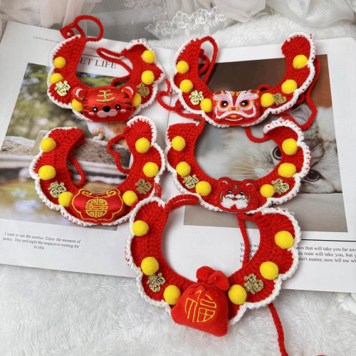 ペット猫の新年犬の手フック毛糸ニットの口の首輪