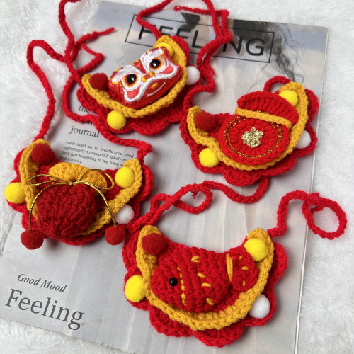 ペットの新年の首輪犬の猫の唾タオルの虎のライオンの首の周りの口のテディは熊の毛糸より首輪を編みます。