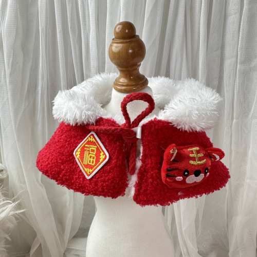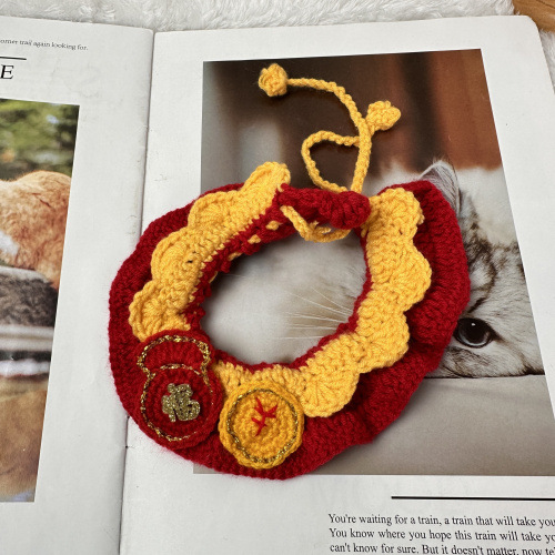 猫ミミ新年の祝日の首輪は毛糸のマントを編みます。
