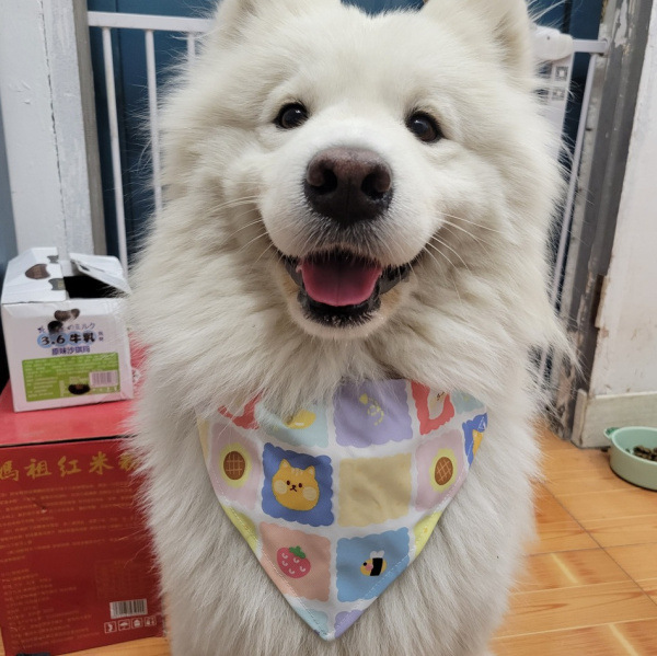金毛の口のタオルは字の三角のタオルを持っています。