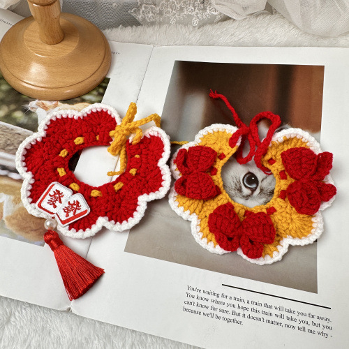 ペットの新年の首輪犬の猫の唾タオルの虎のライオンの首の周りの口のテディは熊の毛糸より首輪を編みます。