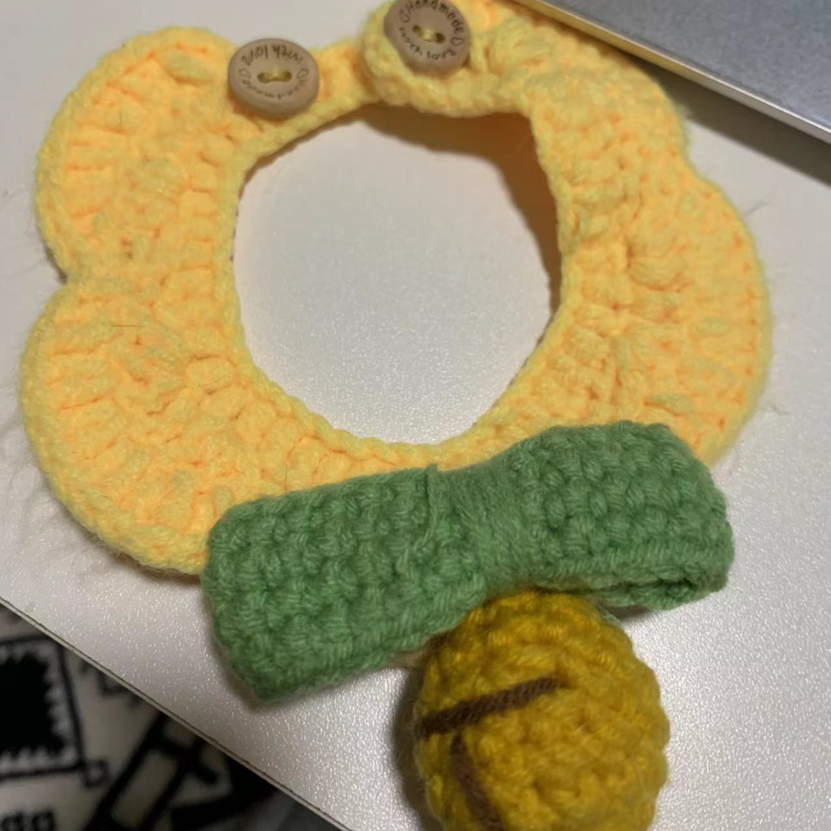 ペットの猫の犬の手のフックの毛糸は口の首輪を囲んでいます。