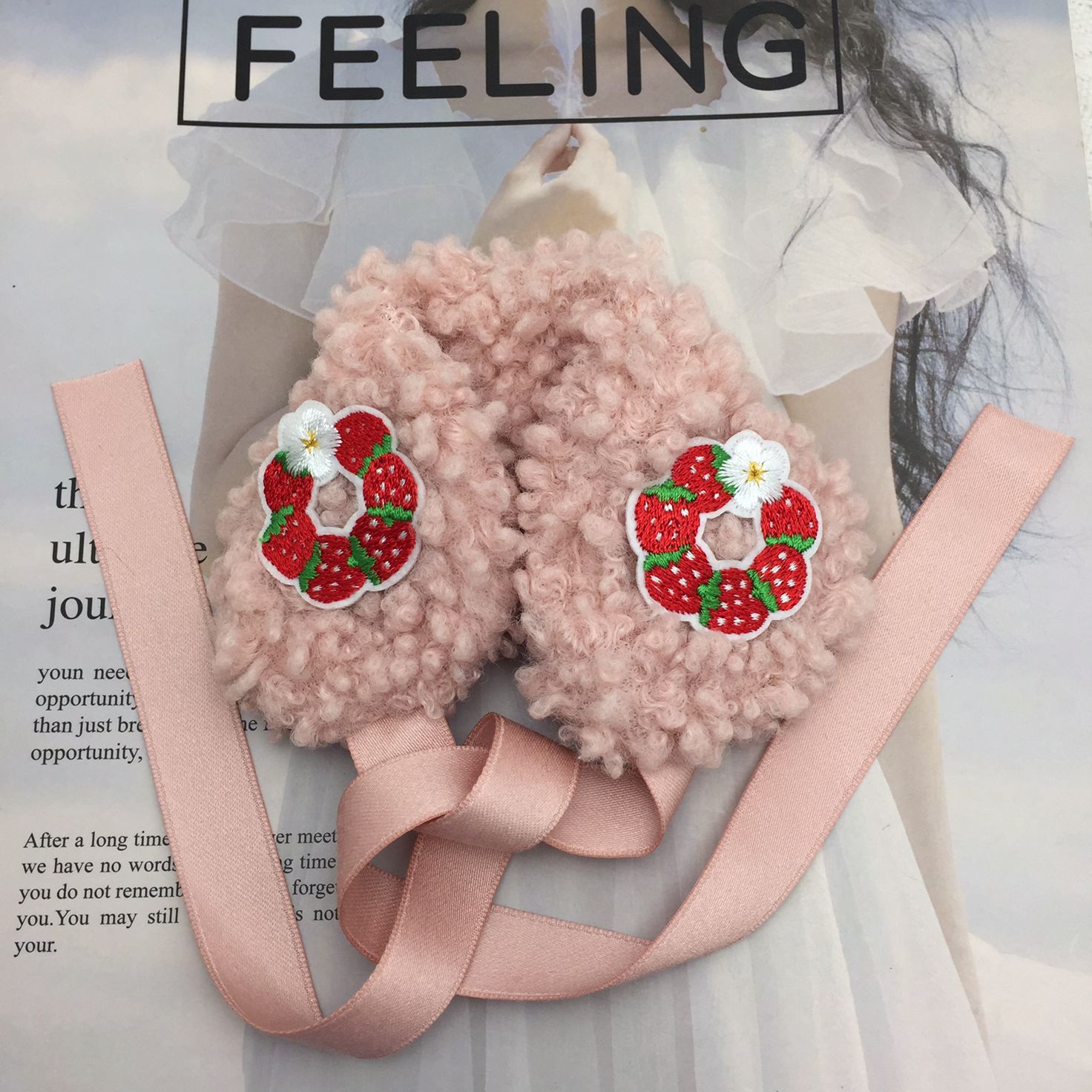 ペットの猫の犬のイチゴのぬいぐるみは口の首輪を囲んでいます。