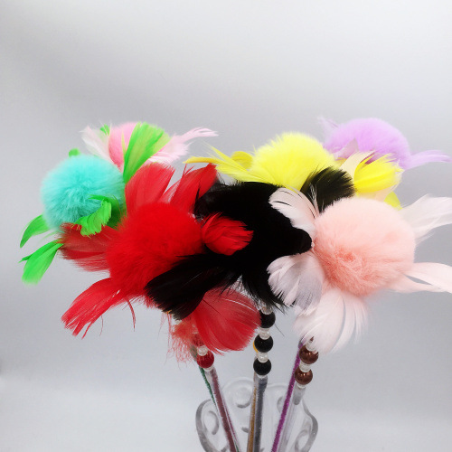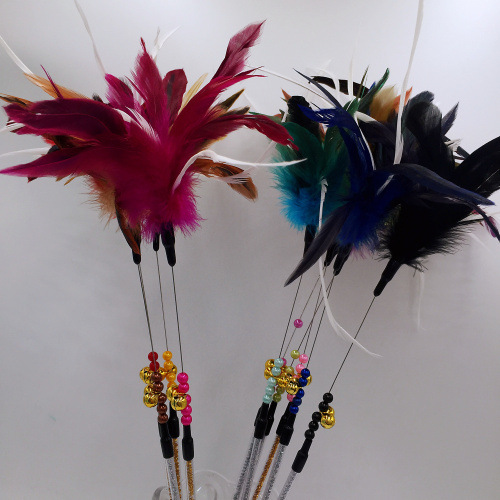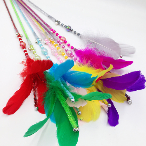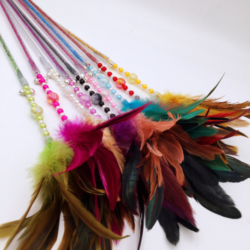 艾凡提逗猫棒鶏毛アクリル弾力逗猫棒長棒カラー逗猫棒猫玩具8367