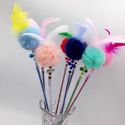 艾凡提逗猫棒球鋼線アクリル弾力逗猫棒長棒カラー逗猫棒猫玩具