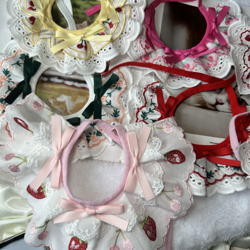 刺繍蝶結びペットレースよだれタオルテディ比熊犬アクセサリー猫の口を囲む牛マフラー