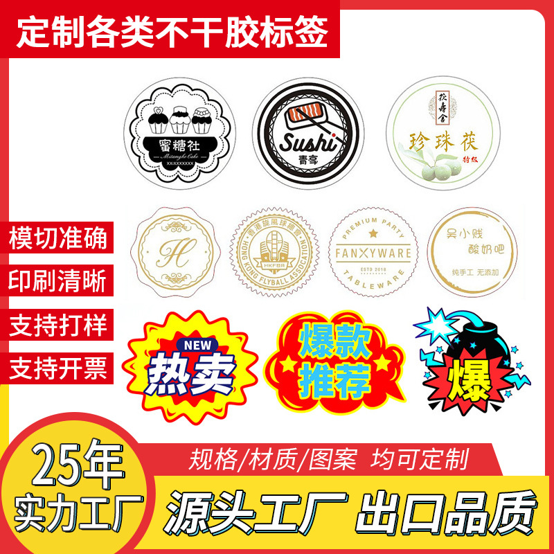 カラー多スタイルステッカーラベル印刷ロゴシール商標共通透明ステッカー印刷ラベル