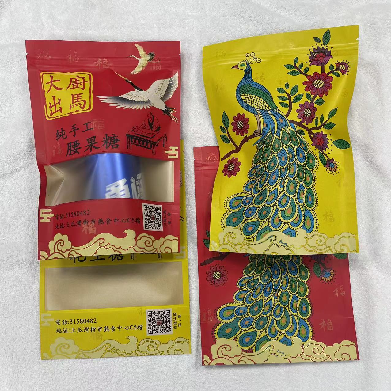 紙プラスチック複合食品包装袋キャンディーレジャー食品透明窓黄クラフト紙直立ジッパー立袋
