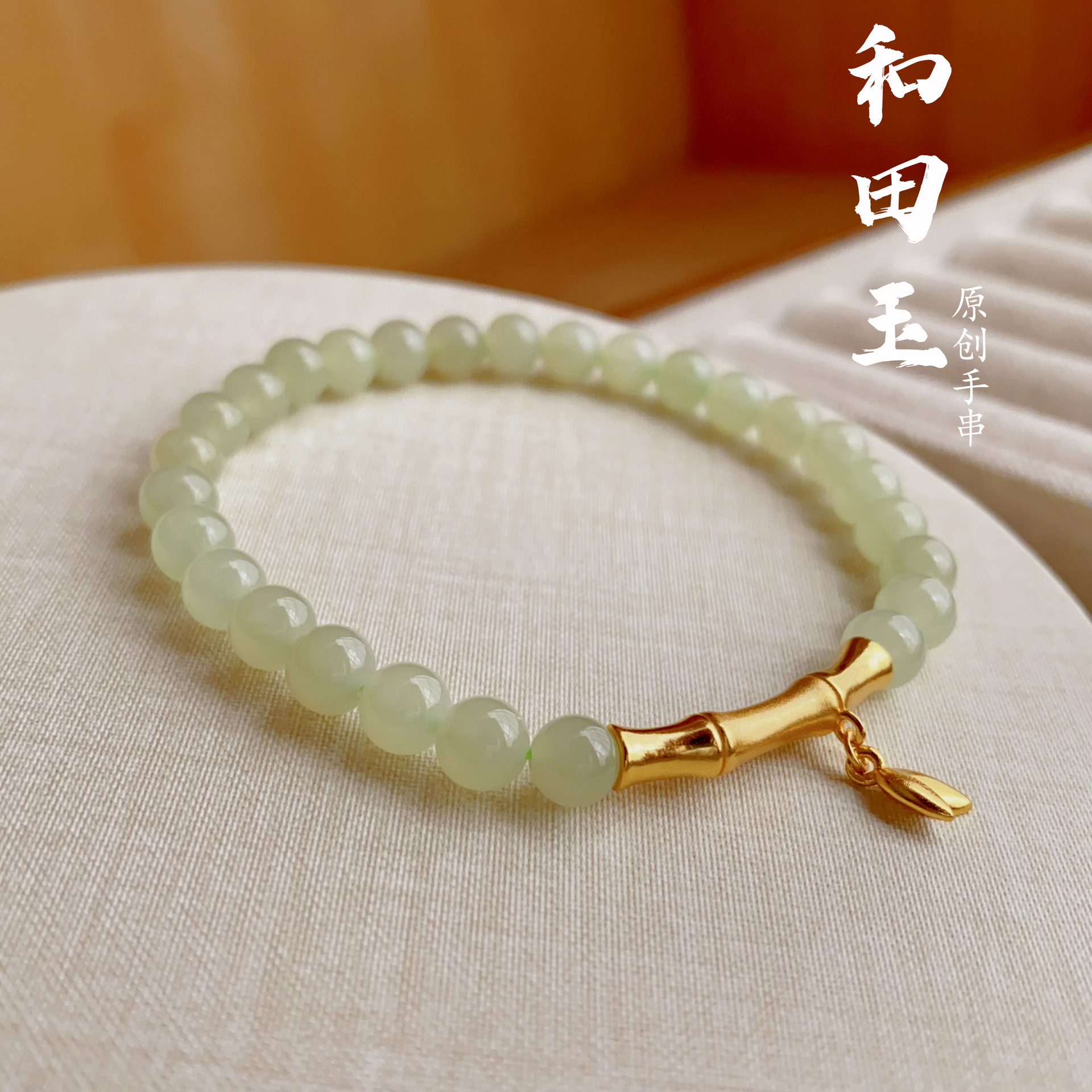 天然和田玉の手串の女性のタイプの晴水のブレスレットの高商品の真玉は鑑定証明書の純銀の竹節の高級感を出すことができます。
