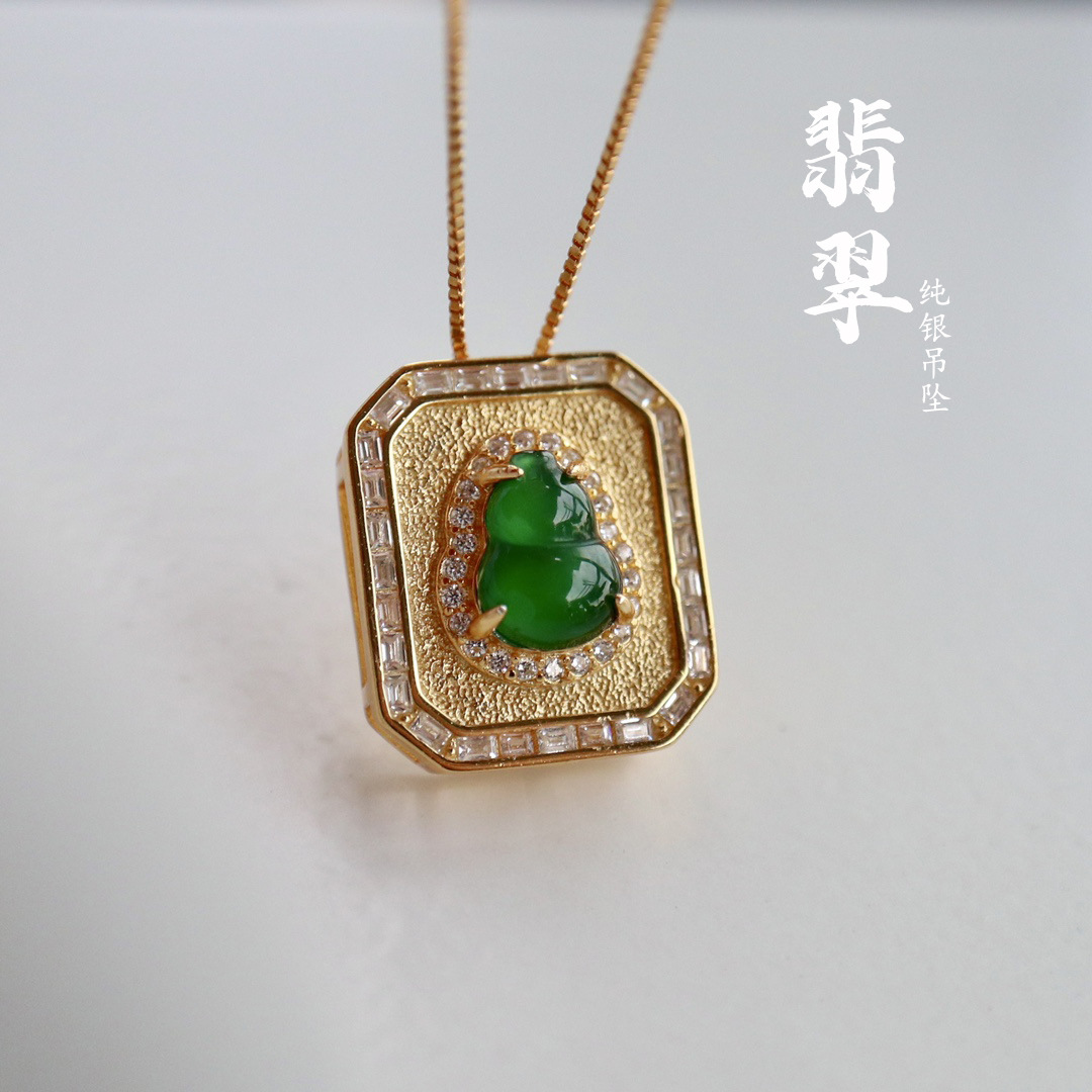天然翡翠a類のペンダントS925銀はa材料の翡翠のヒョウタンのシングルペンダントの女性の本物の高さの鑑定証明書を出すことができます。